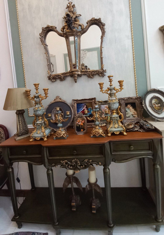 رنگ سبز زیتونی صفحه قهوهای با پتینه طلایی