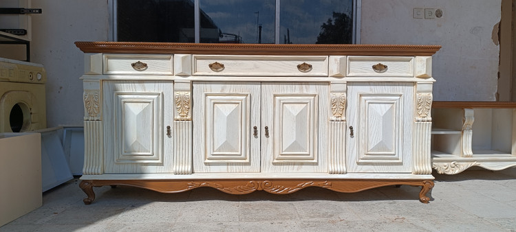 ساخته شده از mdf خام و چوب گردو رنگ سفید و پتینه طلایی180 ×45 ×90